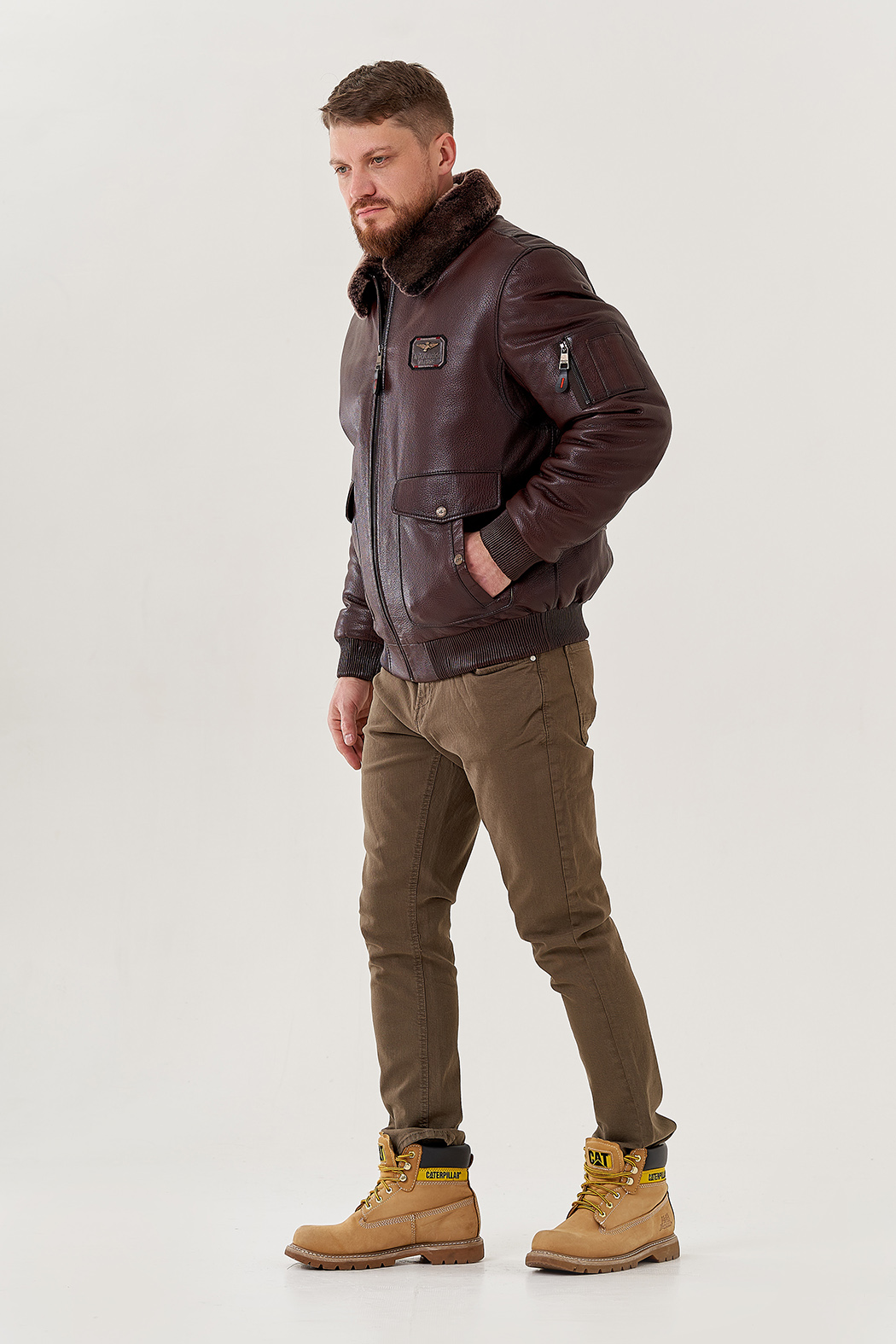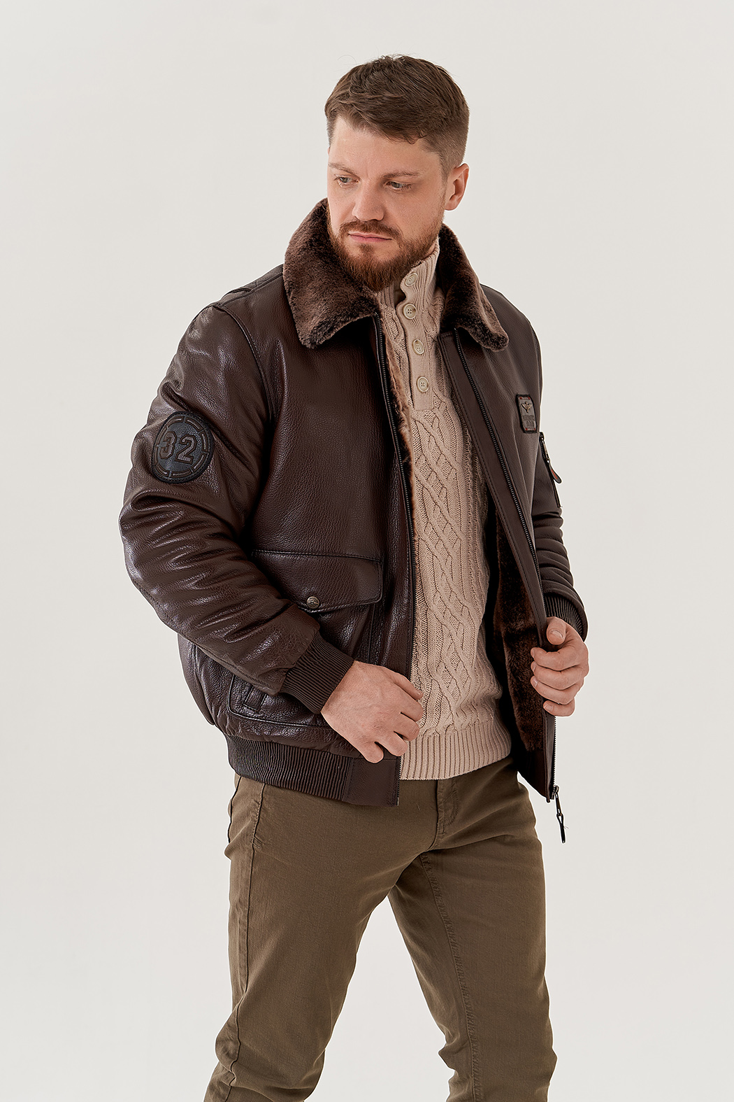 Тип ворота - отложно, отделка овчина коричневая