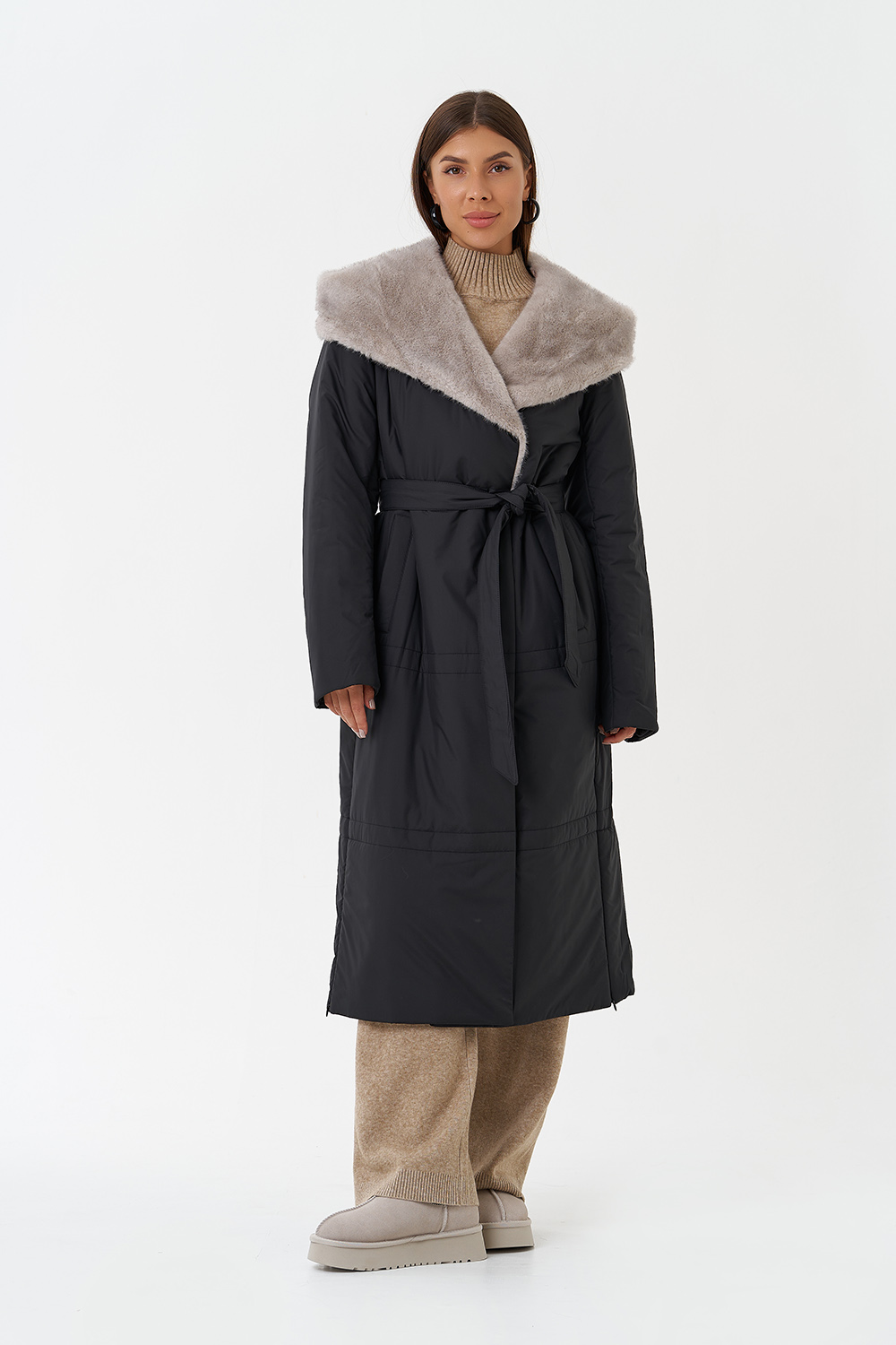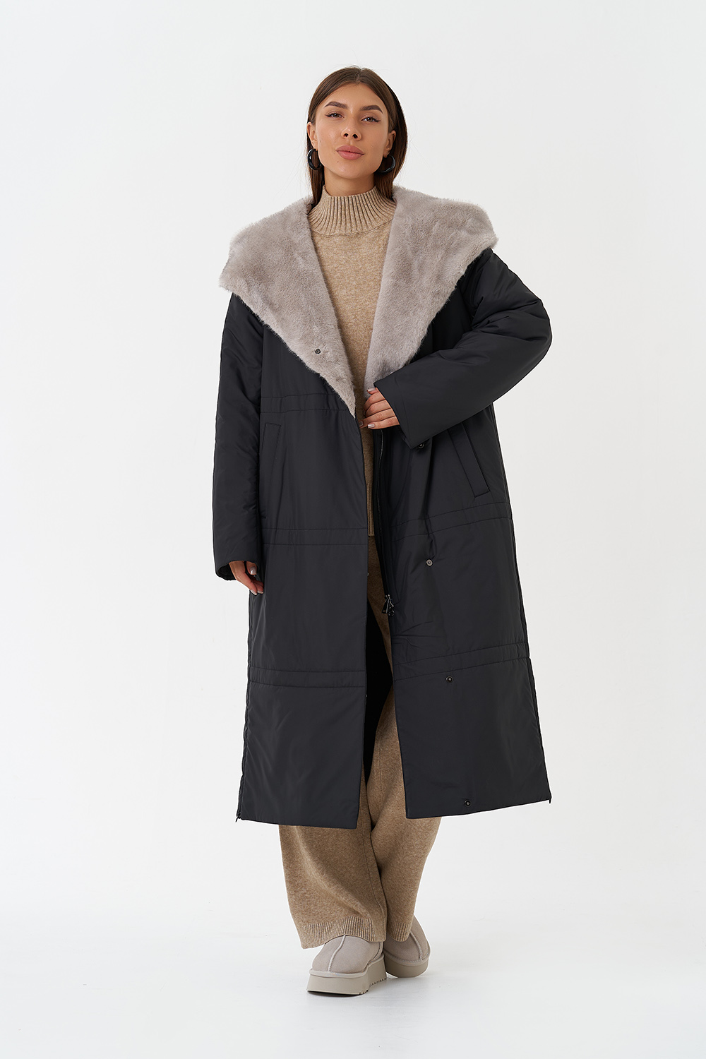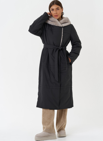 Крой воротника - капюшон, отделка эко мех под норку